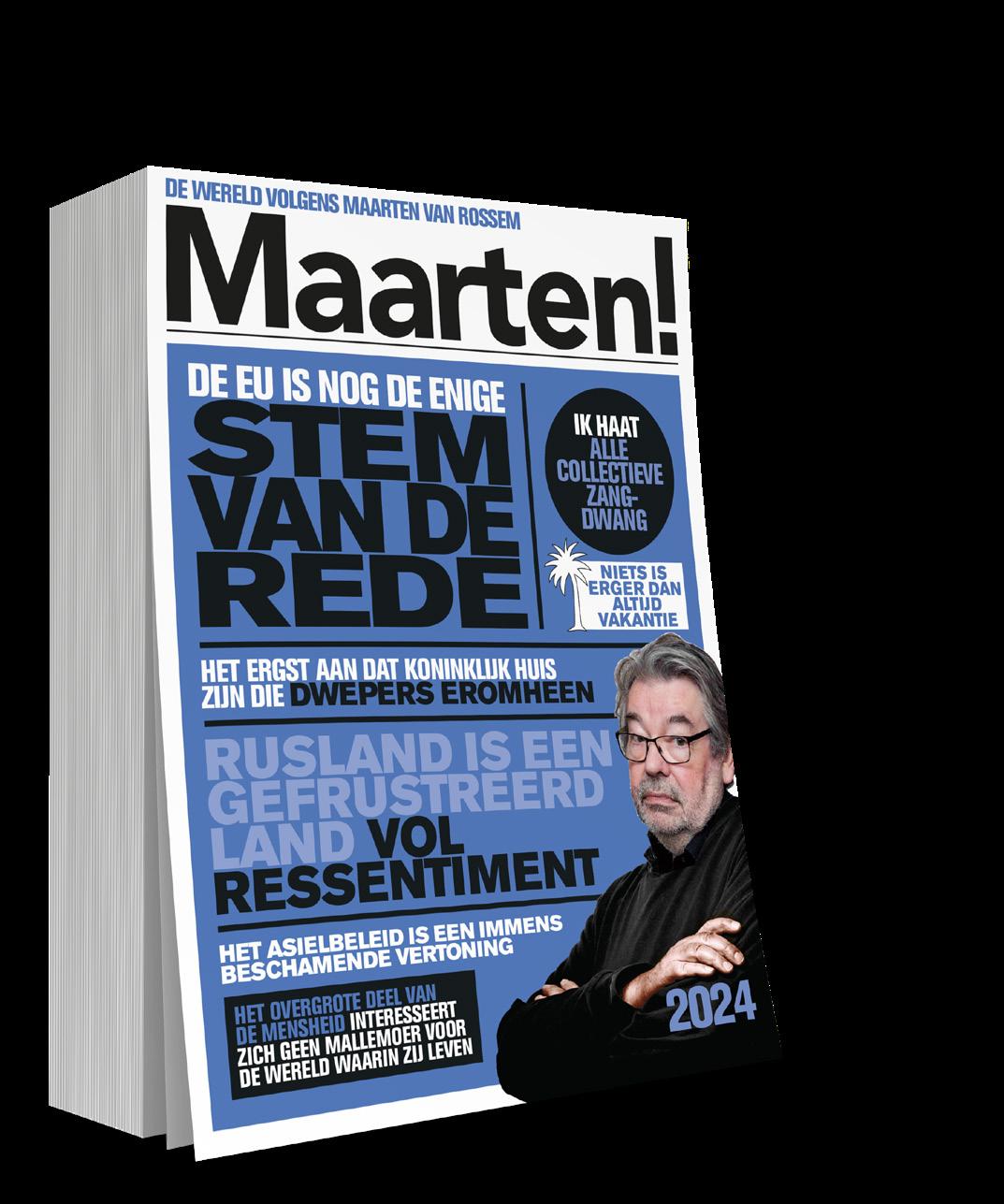 Verschijnt 9 augustus 2023 / Titel Maarten! Scheurkalender 2024 / Auteur Redactie Maarten! / Uitvoering Paperback / Formaat 13 x 18 cm / Omvang 640 pagina’s / Prijs € 17,50 / NUR 014