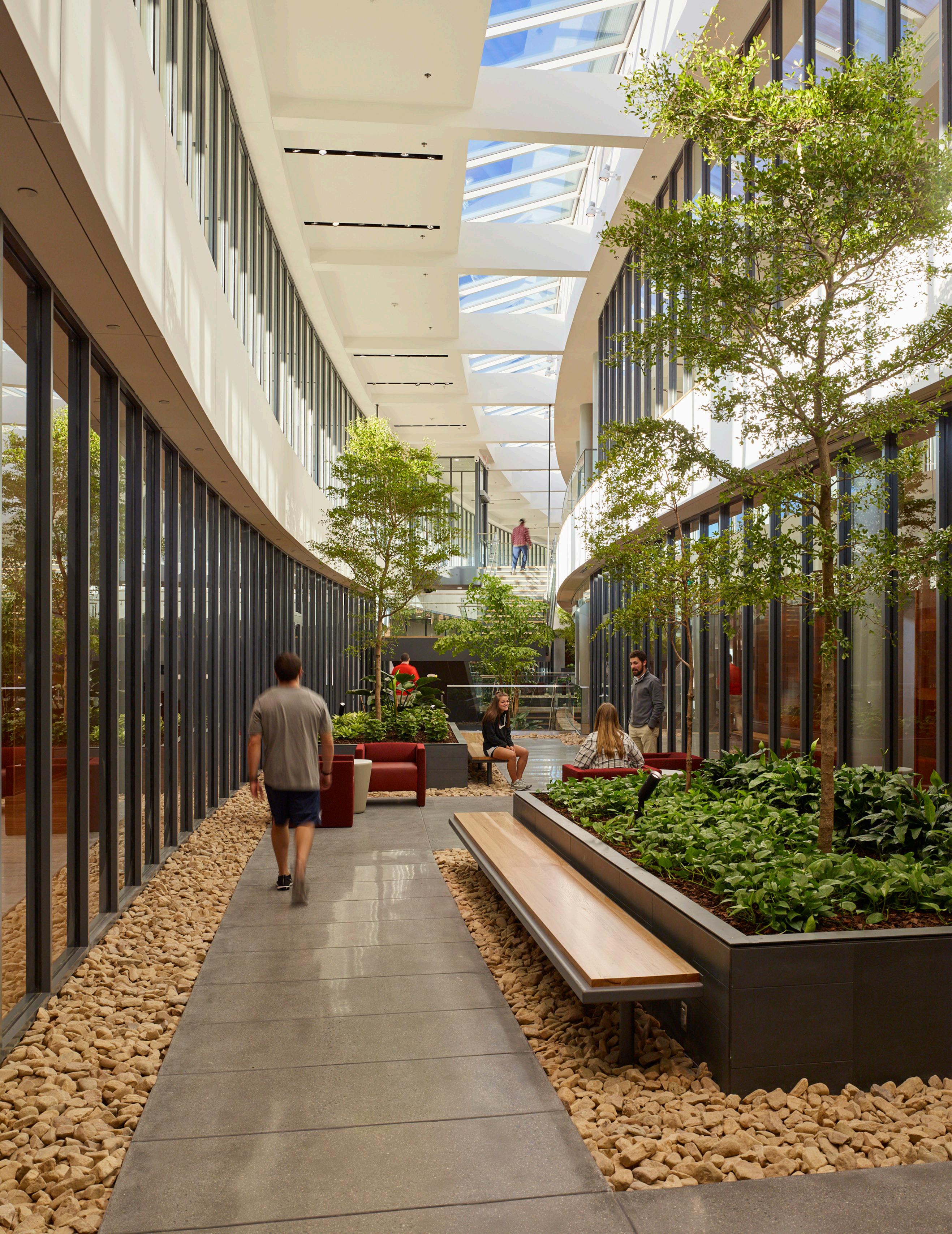 Health-centered design elements – such as biophilia, views to nature, or access to daylighting – can enhance well-being, support mental clarity and physical performance, and expedite healing. These outcomes are nourishing for most all communities, particularly for student athletes – who experience intensive physical wear and tear as well as emotional exertion, among other pressures.