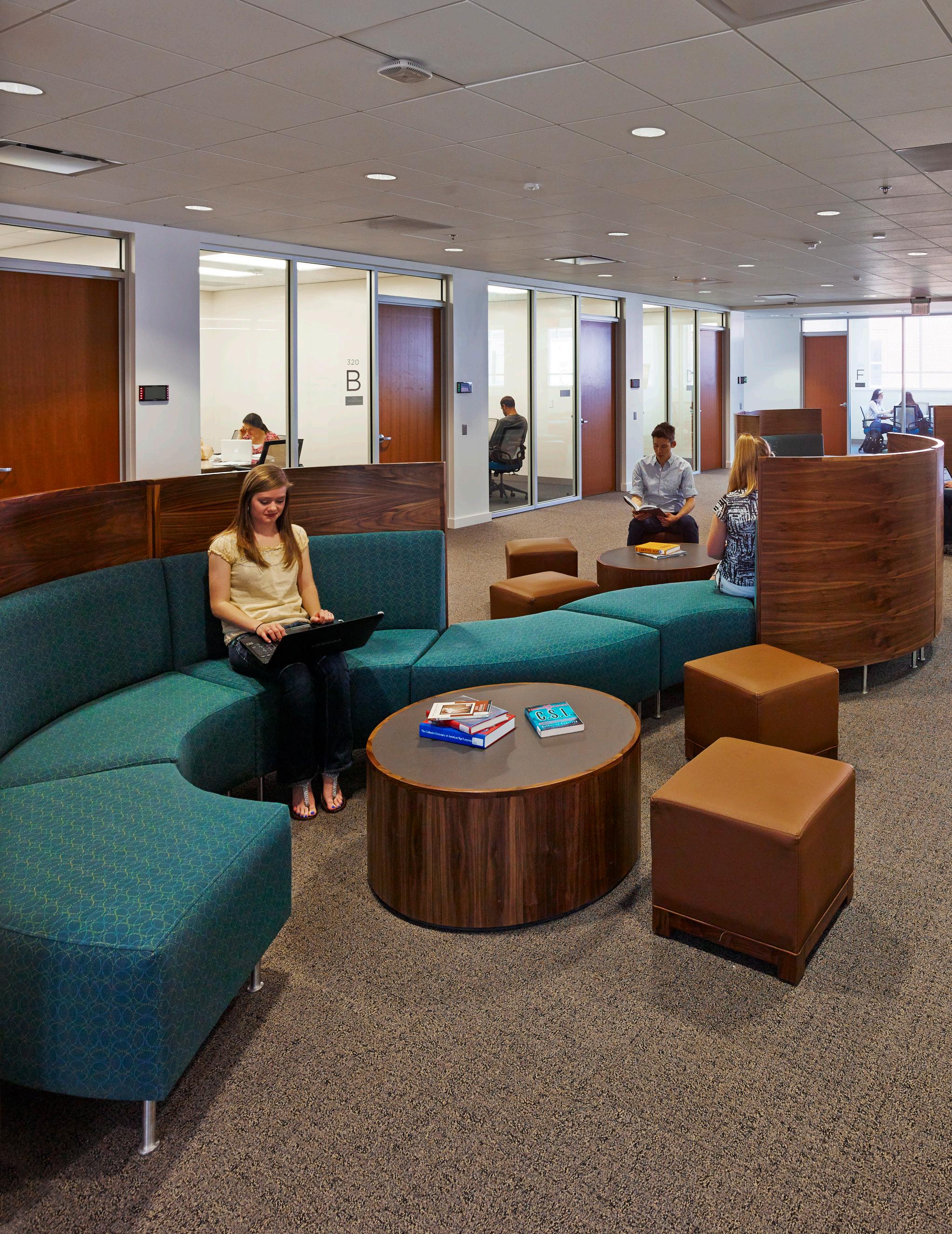 However, many campuses suffer from a lack of collaborative learning space to support this group work. Spaces within a student center can fill this need, supporting the academic development of its students and fostering a culture of learning. This allows students to experience learning as an on-going engagement – a long-term conversation – that extends beyond the walls of the classroom and into their daily lives.
