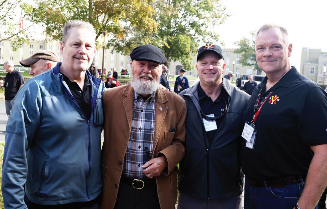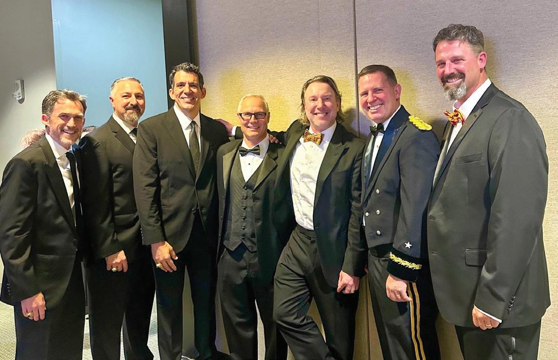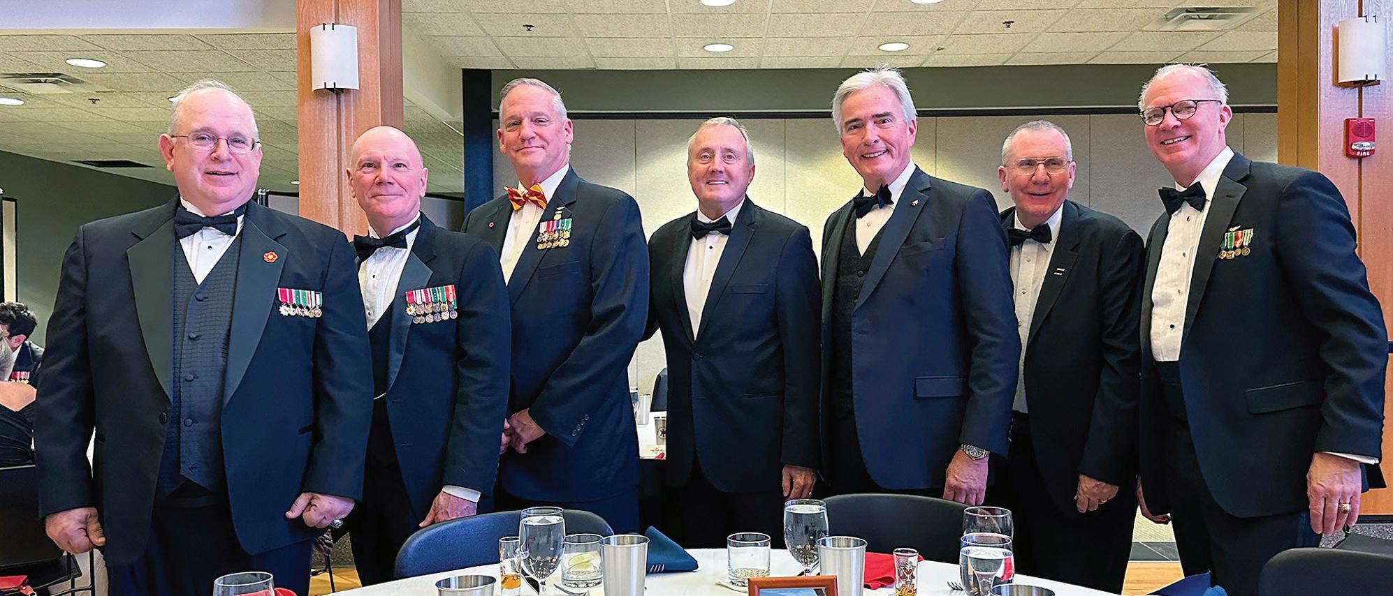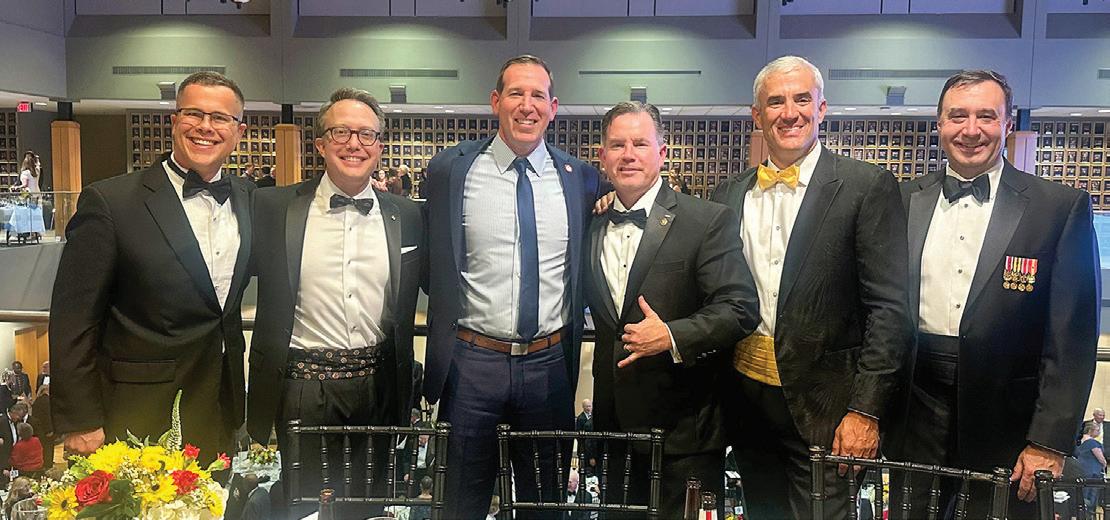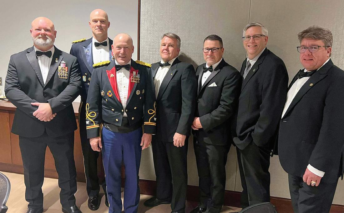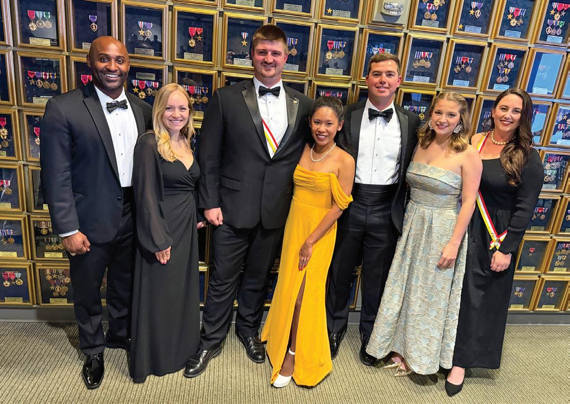 U.S. Army Brig. Gen. Shannon-Mikal Lucas ’95 serves as the guest speaker for the 8th Military Police Brigade Ball and connects with fellow VMI alumni at Schofield Barracks, Hawaii, Sept. 26, 2025. Pictured are (from left) U.S. Army 1st Lt. Savanah (Diamond) Wickham ’22, 1st Lt. Cody Wickham ’23, Lucas, and 1st Lt. Josh Farr ’23.