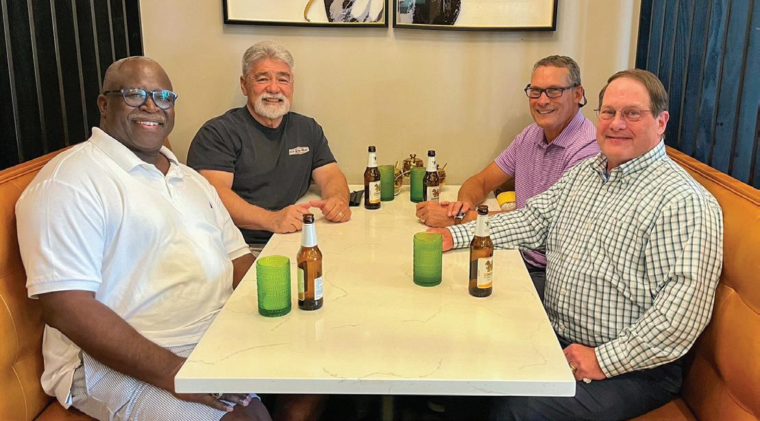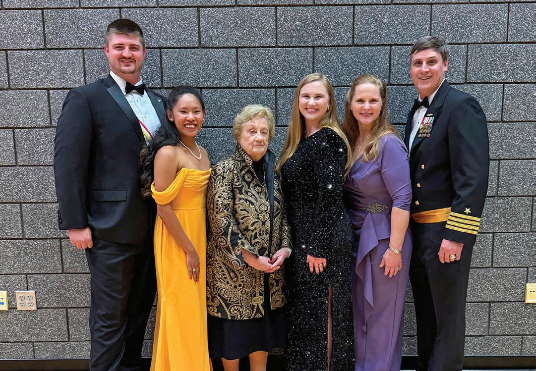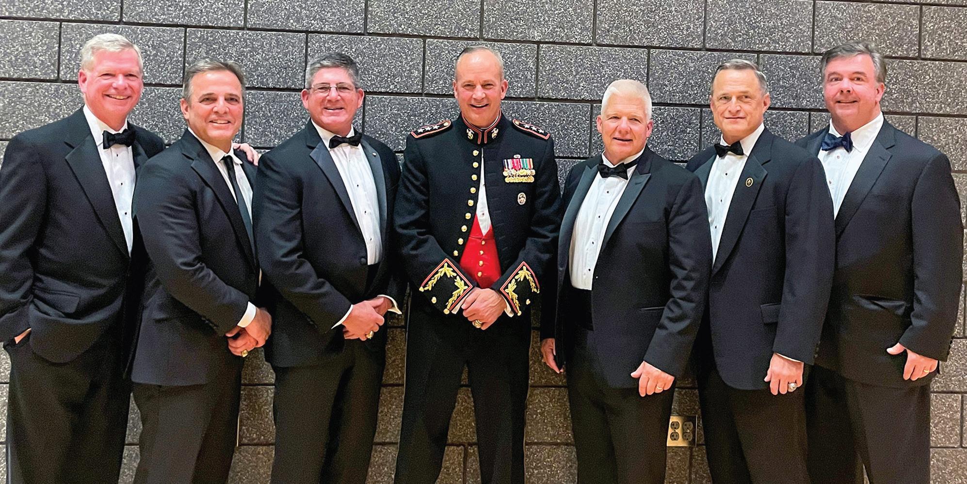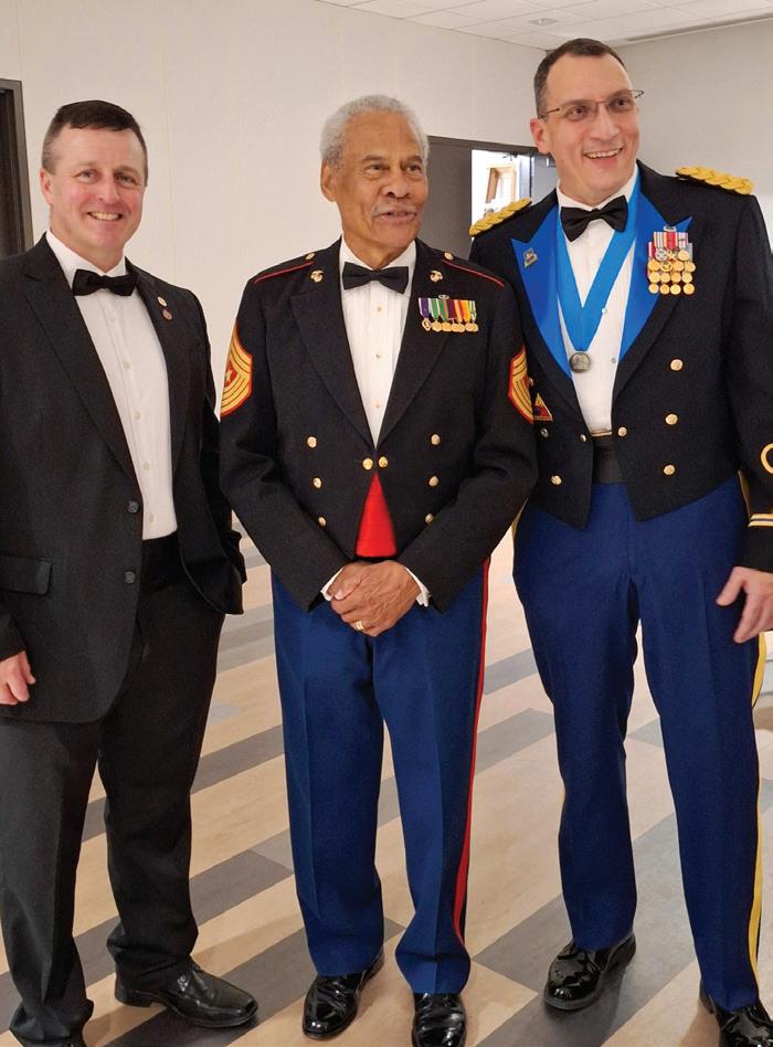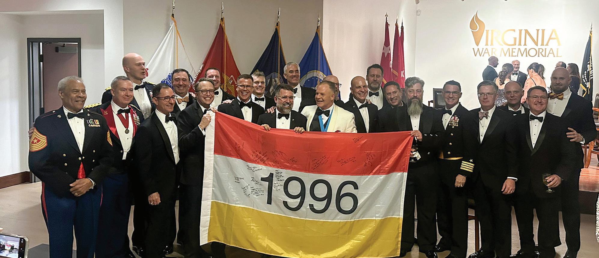 U.S. Army Brig. Gen. Shannon-Mikal Lucas ’95 serves as the guest speaker for the 8th Military Police Brigade Ball and connects with fellow VMI alumni at Schofield Barracks, Hawaii, Sept. 26, 2025. Pictured are (from left) U.S. Army 1st Lt. Savanah (Diamond) Wickham ’22, 1st Lt. Cody Wickham ’23, Lucas, and 1st Lt. Josh Farr ’23.