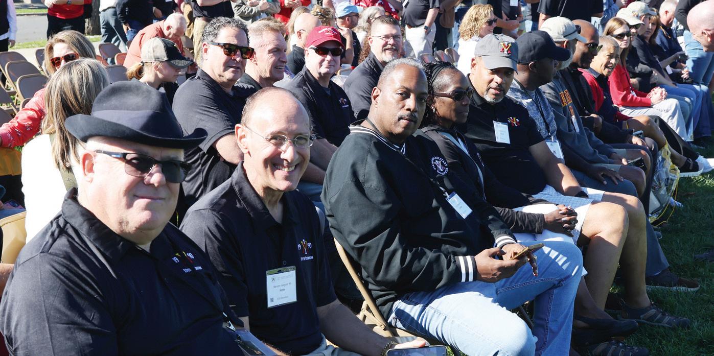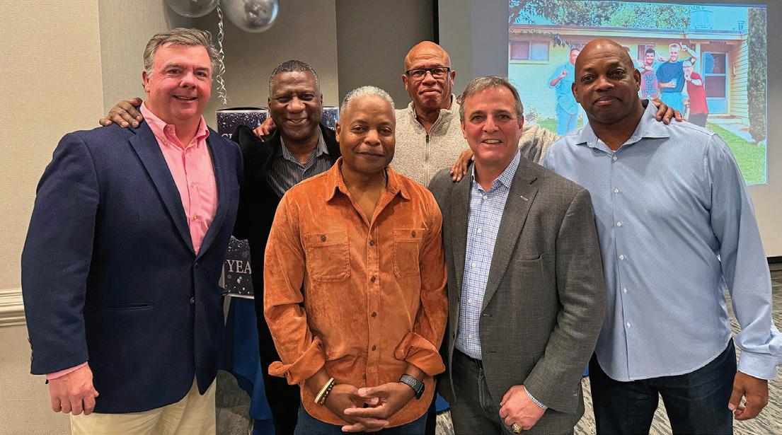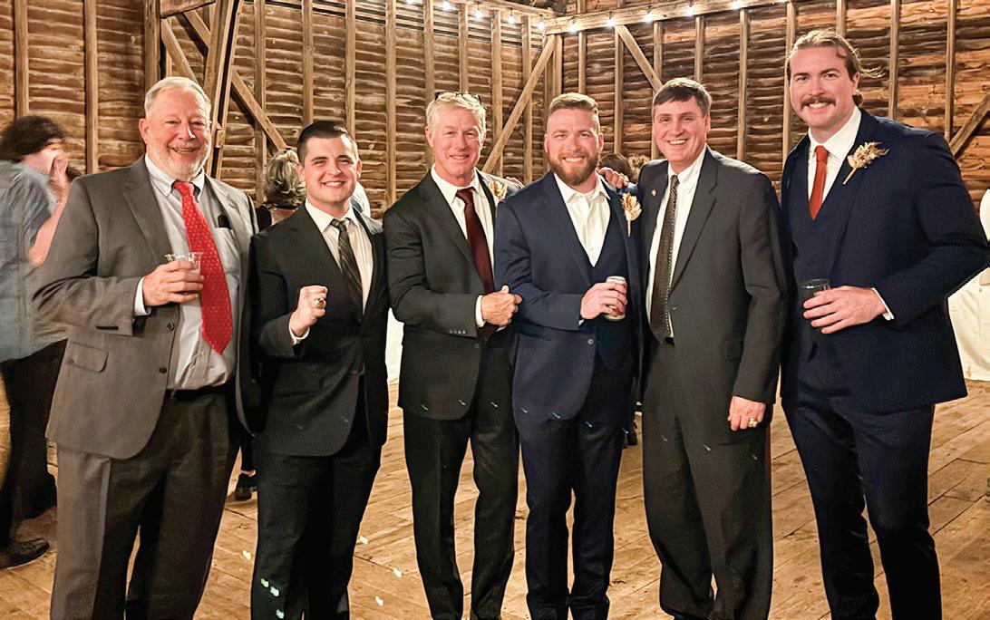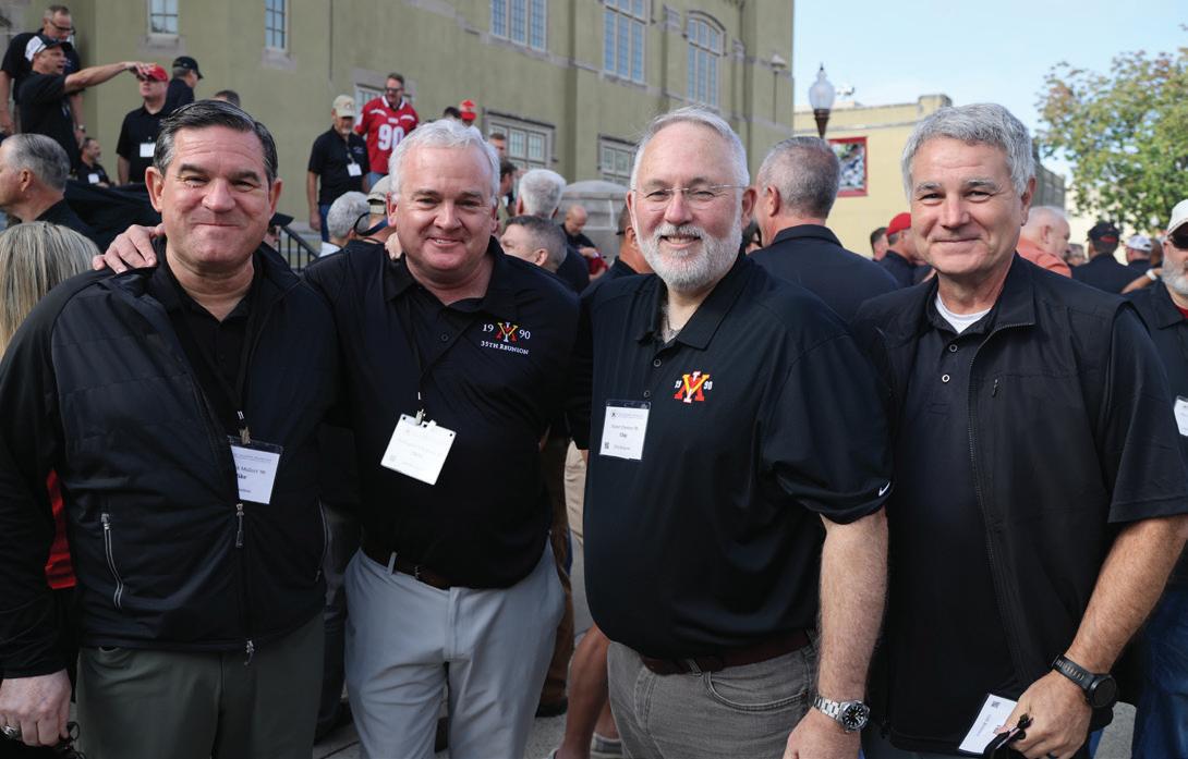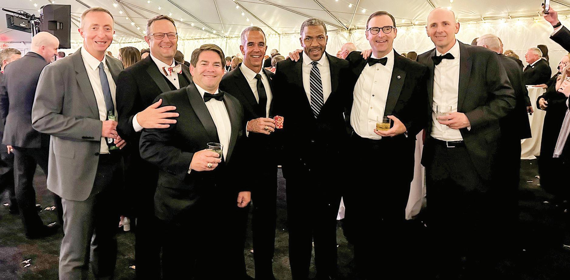 After his recent promotion to lieutenant general in October 2025, U.S. Army Lt. Gen. Christopher L. Eubank ’91 takes command as commanding general of U.S. Army Cyber Command at Fort Gordon, Georgia, at his change of command ceremony Dec. 3, 2025. Pictured attending Eubank’s change of command ceremony are (from left) John Duffy ’91, retired U.S. Marine Corps Col. Omar Land ’91, retired U.S. Army Col. Jerry Eubank ’61, Eubank, Chuck Story ’91, Chris Barnett ’91, and U.S. Navy Reserve Capt. Craig Eubank ’93.