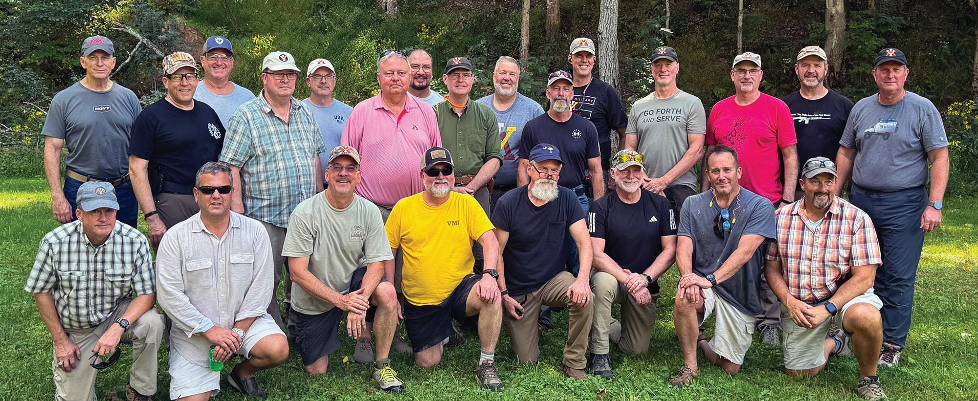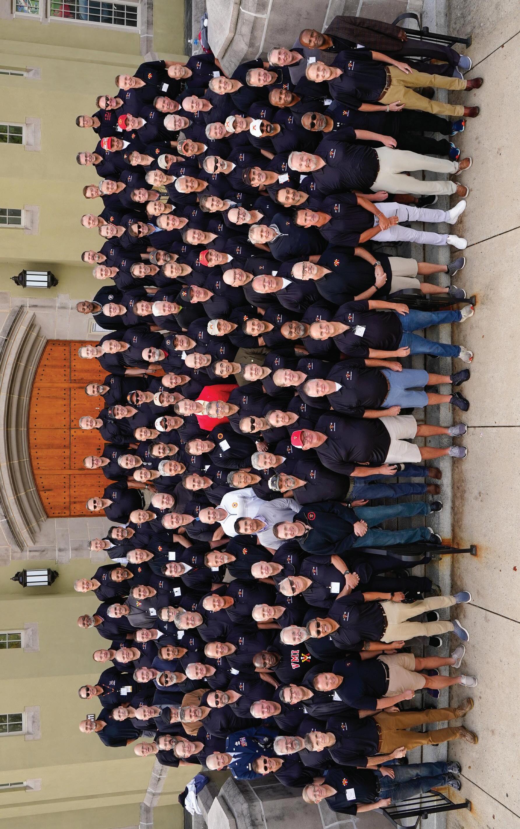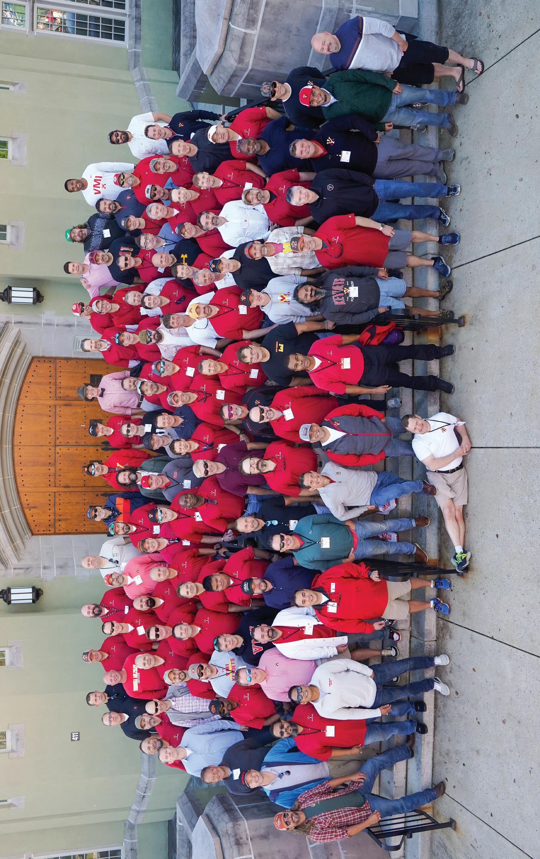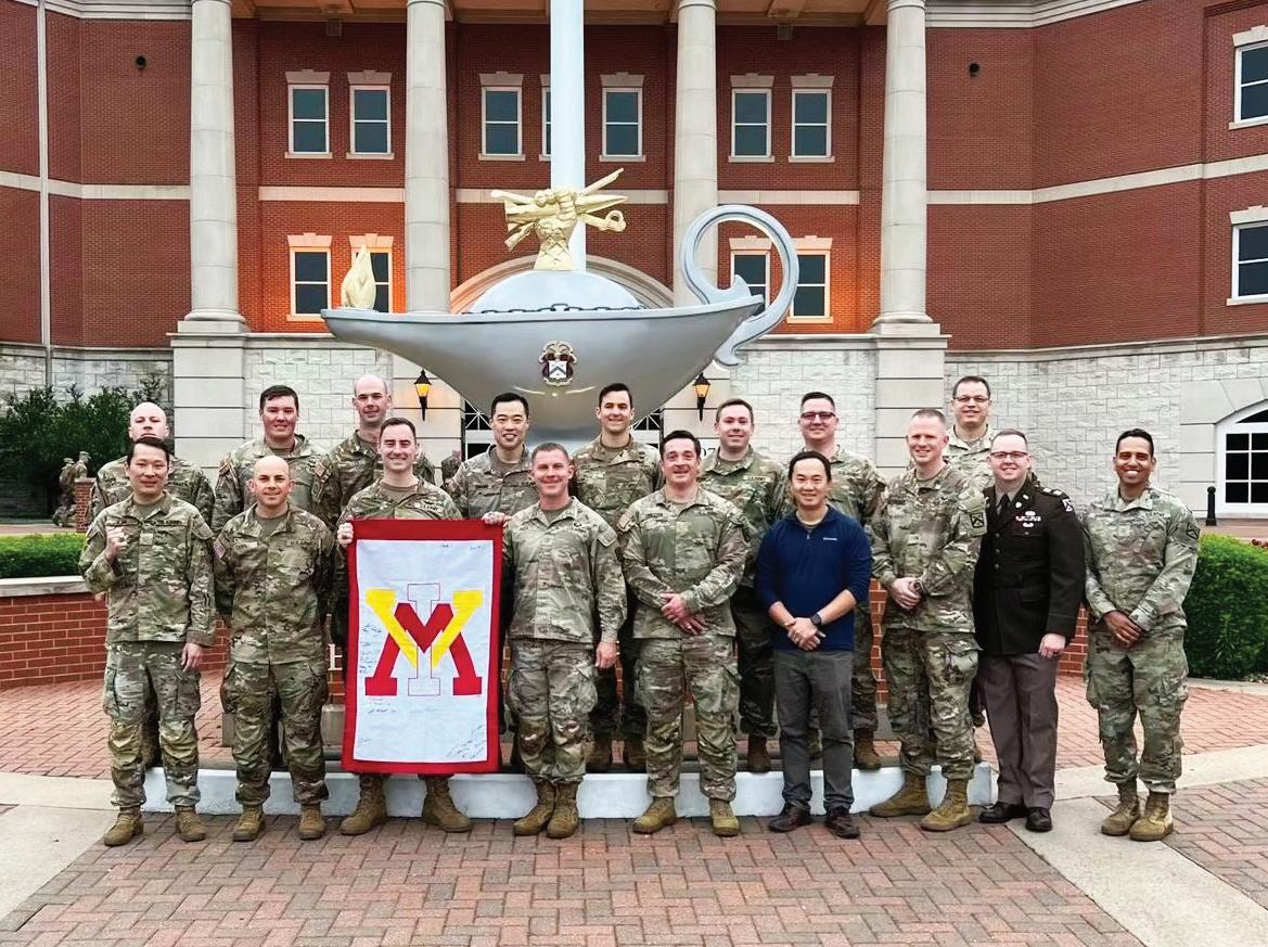 Pictured at the U.S. Army Command and General Staff College and the School of Advanced Military Studies in Leavenworth, Kansas, in 2025 are (front, from left) U.S. Army Majs. Michael Kim ’09, T.J. Curl ’14, Chris Hooks ’13, Ben Kier ’14, Andy Eddleton ’14, Allen Chen ’13, Nathan McFadden ’13, Quentin O’Neal ’14, Franklin Banegas ’12, (back) Quentin Sweetser ’13, Ben Waterbury ’13, Robert Dilley ’13, Sungkuyn “Eddie” Chang ’13, Nathan Beck ’13, Matt Dudek ’13, Franklin Overstreet ’13, and Ike Williamson ’13.