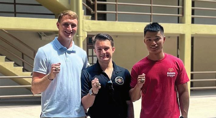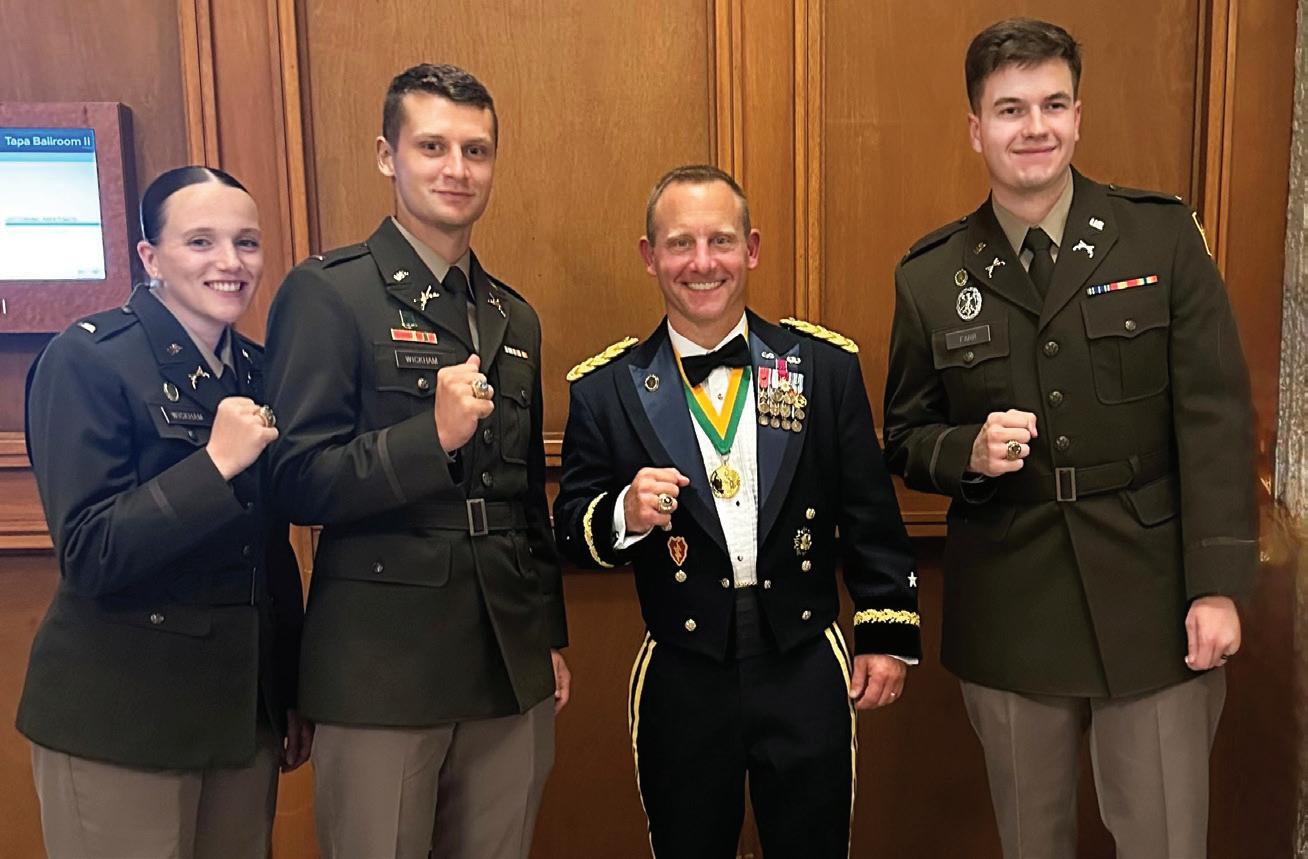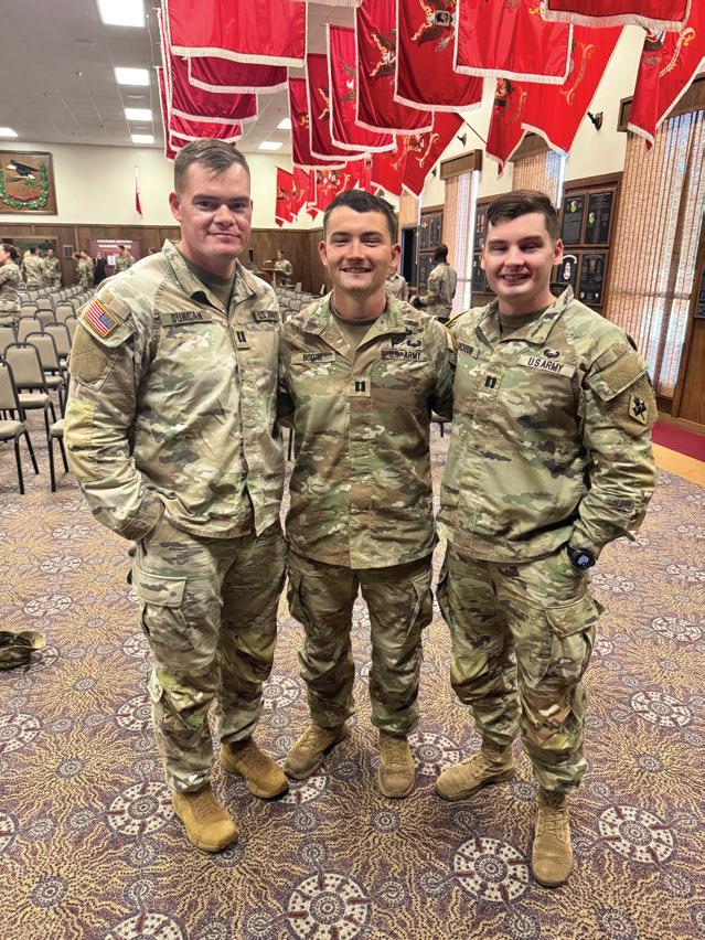 Right: Celebrating Booth’s graduation from the Sapper Leader Course are (from left) U.S. Army Capt. John Duncan ’21, Booth, and Capt. Palmer Jackson ’21.