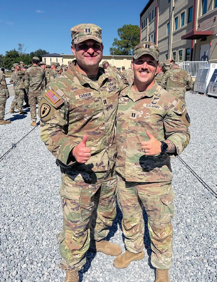 Army Capt. James Booth ’21 (left) and 2nd Lt. Richard Burke ’22 graduate from the U.S. Army Sapper Leader Course in September 2025.