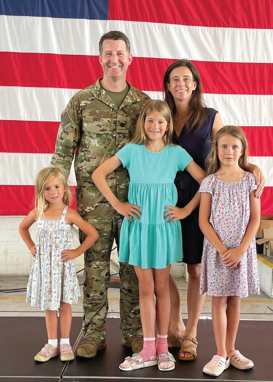 U.S. Coast Guard Cmdr. Richard “Chris” Guy ’07 with his family at his change of command ceremony, assuming command of Tactical Law Enforcement Team South in Miami, Florida, July 10, 2025.