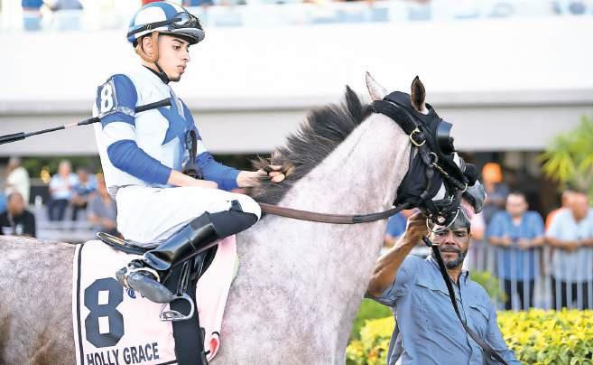 Nuestra favorita para esta tarde es Holly Grace, que en el Día de la Raza finalizó segunda a casi seis cuerpos de Gold Apple, realizando su carrera normal de cerrar fuerte desde puestos de atrás, ayudada por la posición afuera de la mayoría de sus rivales. Esta tarde cuadra del último puesto afuera del grupo, lo que es un punto muy a su favor y viene respaldada por varios buenos briseos preparatorios con los que confirma que reaparece en muy buena condición. Sin embargo, en este evento que luce con buen nivel, le vemos buenas posibilidades a otras participantes, entre ellas Wingy, que en el clásico ganado por Gold Apple terminó tercera a seis cuerpos luego de irse al frente con paso sólido de :22 3/5 y :45 flat en los primeros dos parciales. Para esta tarde debemos