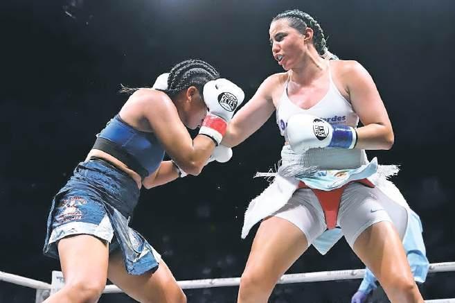 Stephanie Piñeiro (derecha) dominó la pelea ante la retadora argentina. >Suministrada / Universal Promotions