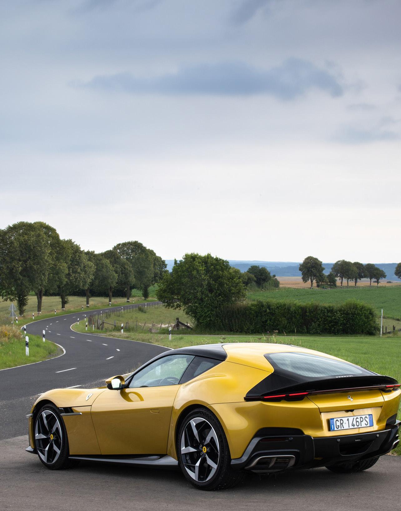 en movimiento: una berlinetta biplaza con motor V12 atmosférico en posición central delantera, tributo a la herencia y la innovación que definen a Ferrari. Inspirado en los Gran Turismo de los años 50 y 60, este modelo combina elegancia, tecnología y un sonido inconfundible. Su corazón late con 819 caballos de fuerza y un rango de revoluciones que llega hasta las 9,500 rpm, entregando el 80% del par motor desde las 2,500 rpm. El resultado es una respuesta inmediata