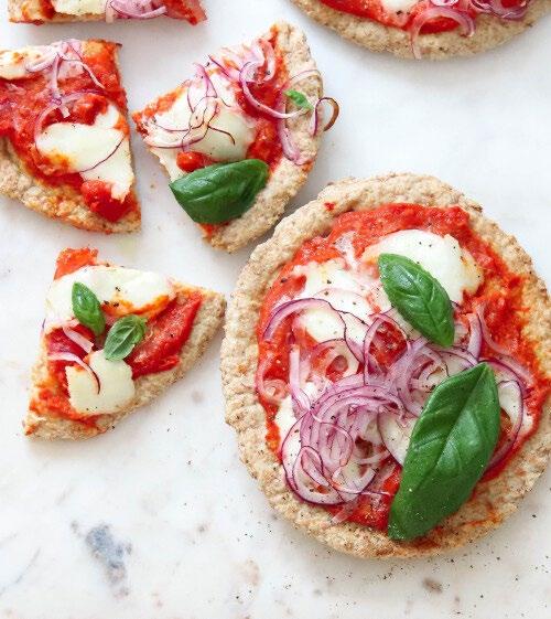 Pizzabroodje van bruinbrood, tomaten(puree), 30+ kaas en Italiaanse kruiden