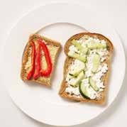 • 1-2 boterhammen (bruin of volkoren)* met magere feta met hummus zonder toegevoegd zout