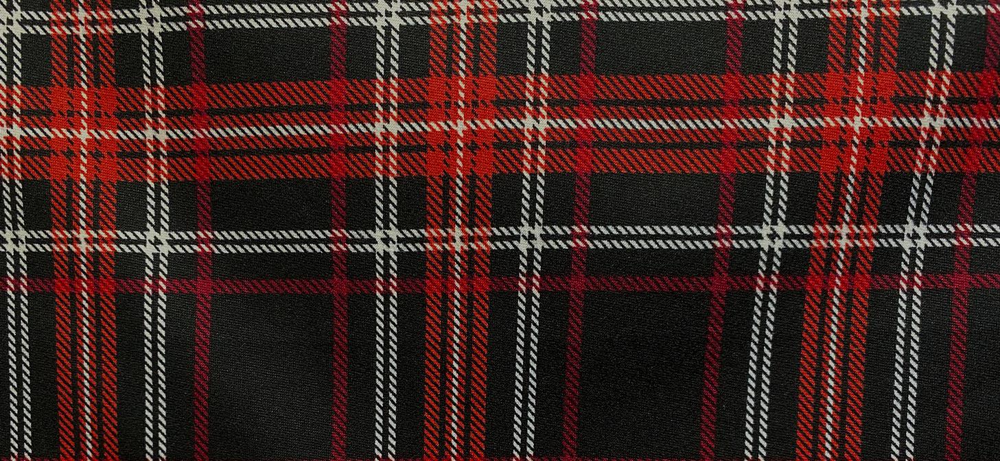 We have been holding onto this since we picked it up in the spring, after a fashion house had finished cutting their holiday line. We aren’t used to seeing a red, white, and black plaid on a double-brushed DTY knit fabric. Bevvy Plaid is perfect for a wrap skirt, a long straight skirt with side slits, or a sheath dress. For work, pair it with our twill, and for play, pair it with the next fabric.