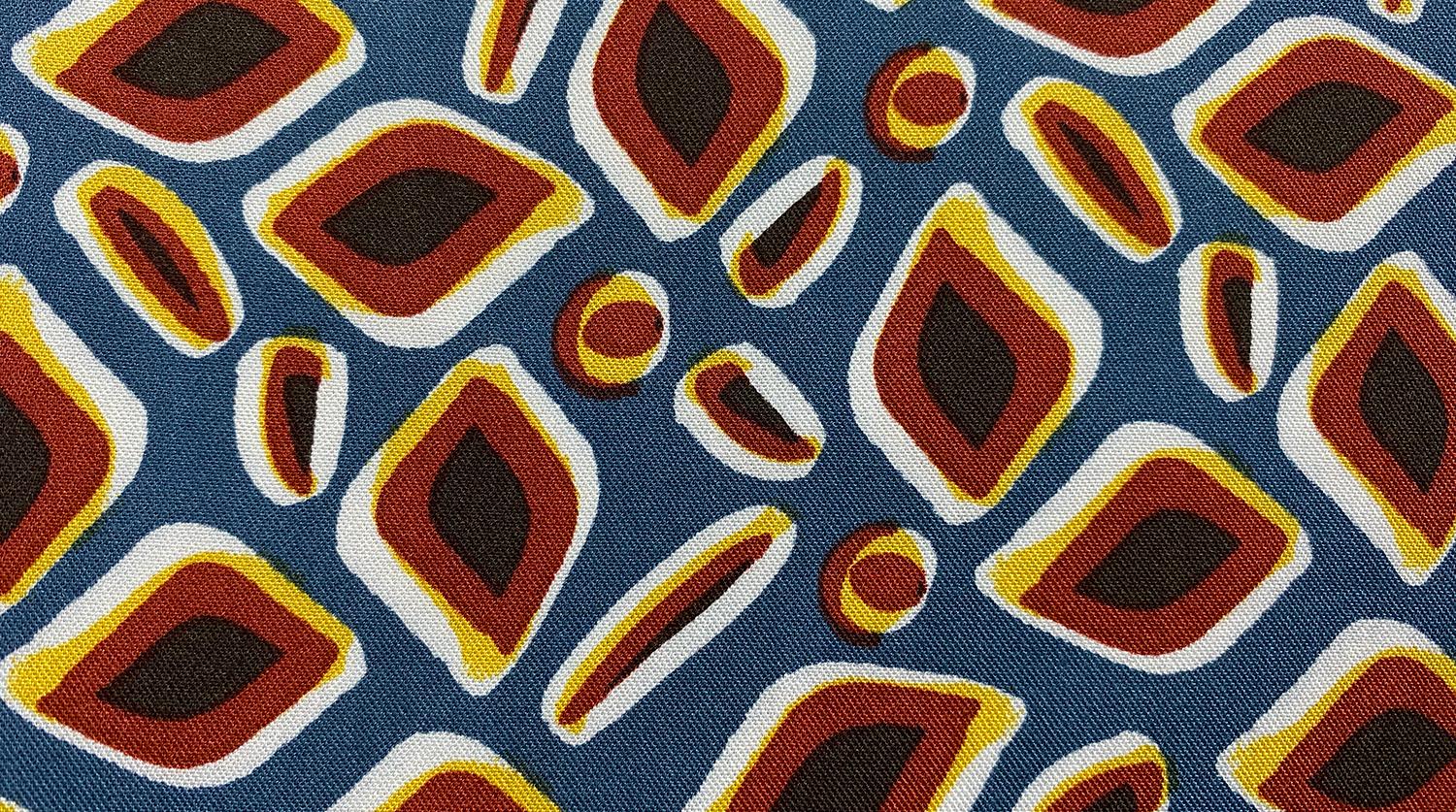 For those of you with a sense of whimsy, we offer River Shapes, a fun rayon poplin from Telio & Cie. The combination of rust, Dijon, and cadet blue tie in beautifully with this collection, and the weight is perfect for a tunic, over-blouse, wrap top, or lined dress or skirt. If you are in a warmer climate or need resort attire, you can make some pull-on, widelegged pants or a sarong skirt. We picked River Luxe as a coordinate to bring out that deep rust. River Luxe is one of our popular heavy-weight Korean ITY knits, ideal for any sewing pattern that calls for medium-weight and all-way stretch.