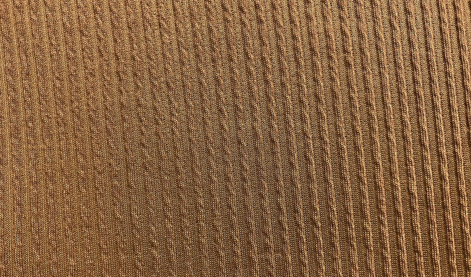Dark Brown Elegant Double Jersey 36% Poly, 34% Rayon, 25% Nylon, 5% Spandex. 51” wide. Cold wash, dry low. 40% crosswise stretch. 40% lengthwise stretch.