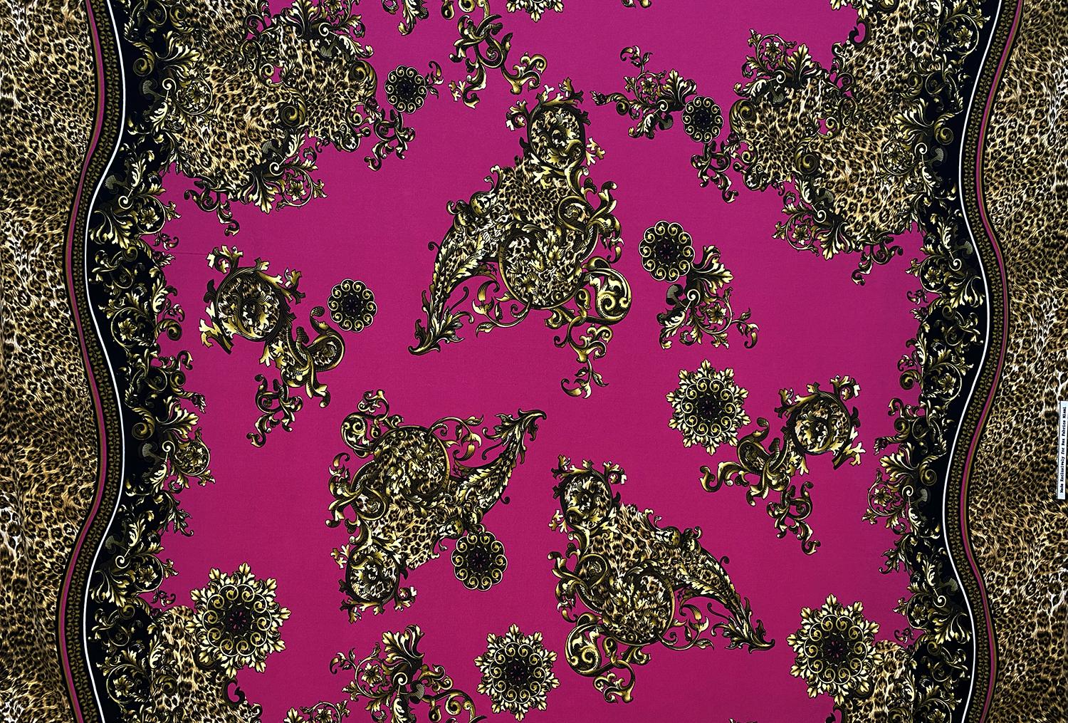 Animal Print Baroque Scrolls on Fuchsia Double-border ITY Knit