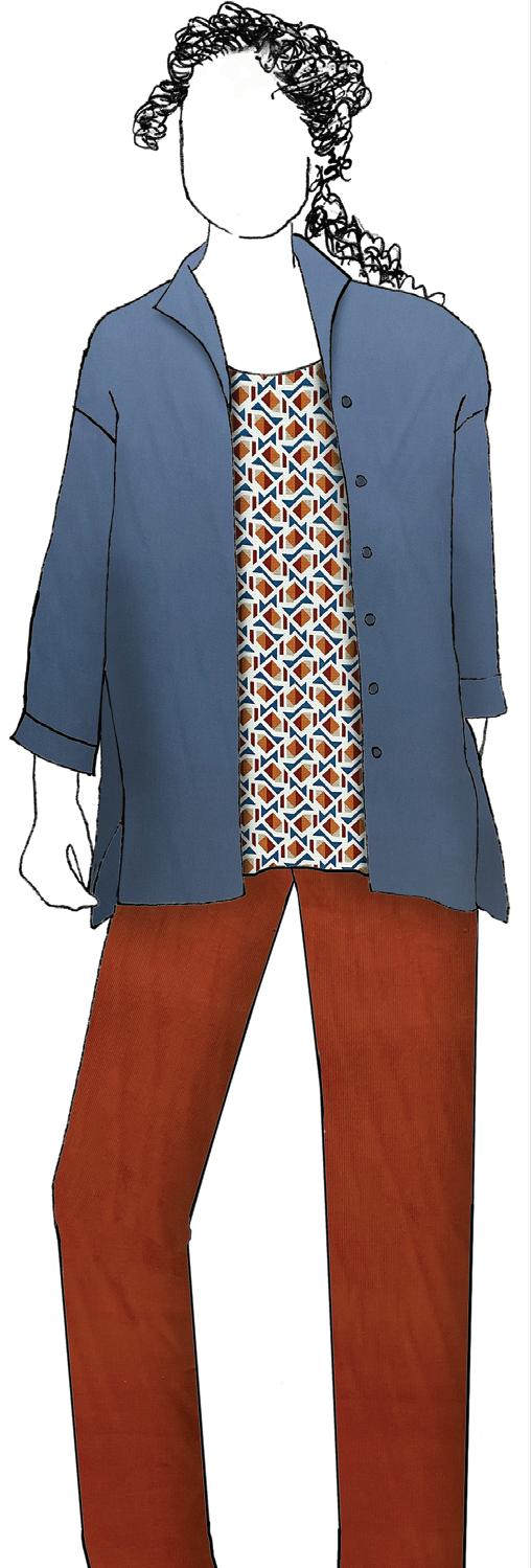 River Russet is a classic cotton corduroy that’s perfect for all wardrobes. Create a men’s style jacket, smart trousers, a youthful romper, fun overalls, and a timeless long skirt with dramatic side slit to show off knee-high boots. Spoiler...we have three more corduroys in this issue!