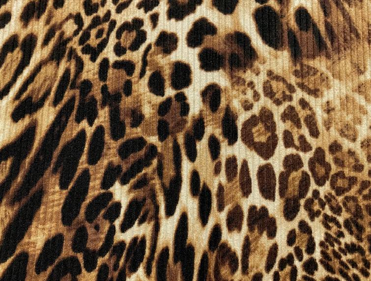 Artsy Chamois cotton sateen features a dull luster, similar to a polished cotton. How classic is this color for making a lady’s suit for work, or a long skirt with a kick-pleat? Wear it with either, or both, of the following animal print knits. Have fun with Artsy Ribs, a playful ribbed knit with a dramatic print and warm tones.