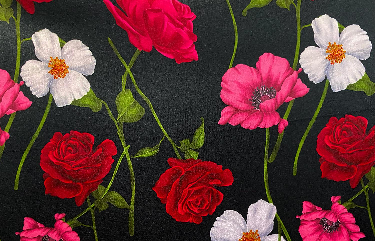 Beautiful Rose Print on Dressweight Stretch Charmeuse