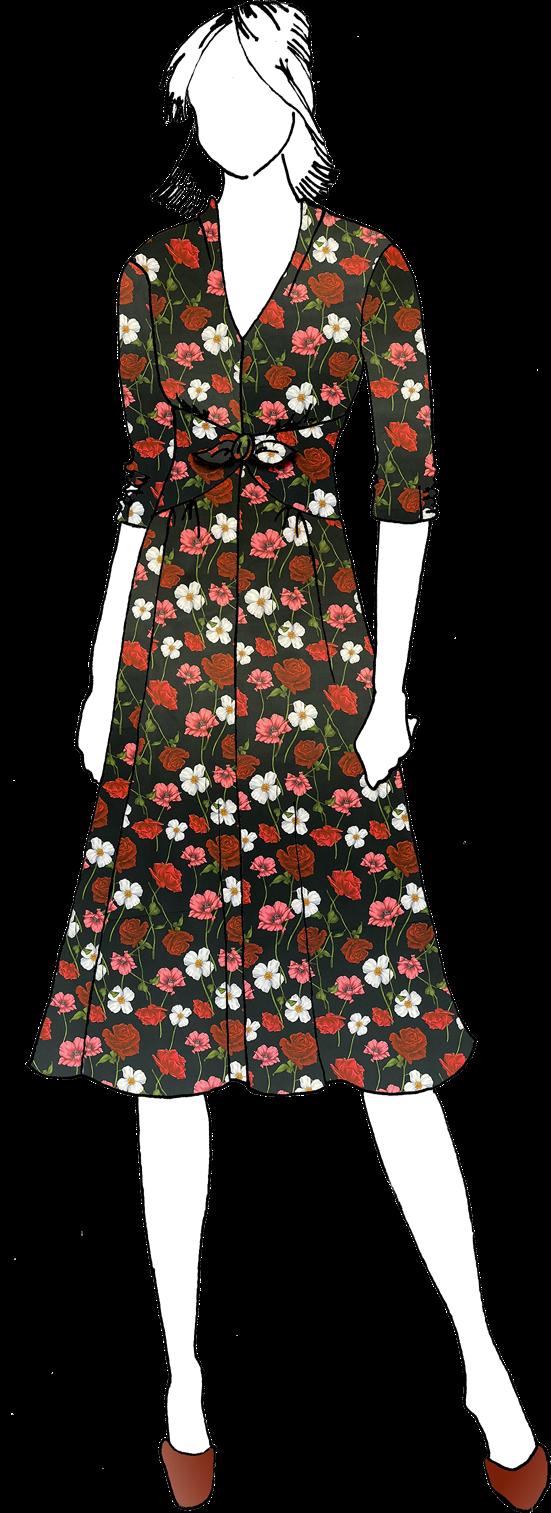 You know we always need to sprinkle in some cheer for the holidays, and we have a bevy of options in the Bevvy collection. Begin with Bevvy Rosie, a romantic dress-weight charmeuse print that can be worn all year. Will you make a vintageinspired dress, like Folkwear’s “Glamour Girl”? Will you treat yourself to a flowing tunic, a button-down collared blouse, or a gored skirt? So many options. We love them all.