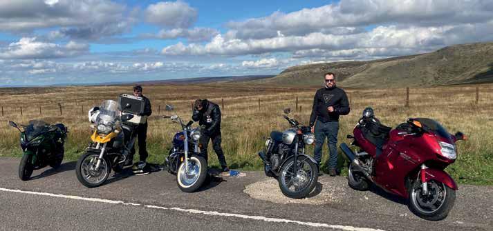 desolate, and it felt like we were the only living souls for miles as we threaded our way across a spaghetti strip of tarmac draped over the peaks. We stopped for a rest and some breakfast at Flash Bar stores, an ancient and remote café high up in the peak district. Here we reflected on our progress, sharing tips on road positioning and general safe riding on these fast-rural roads.