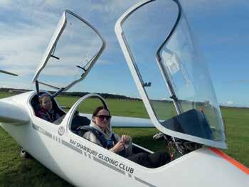 The MEF gliding bursary programme includes 60 minutes of flying training in a motor glider. Here AR Charlotte McAnsh is with instructor Reverend Captain Toby Jones