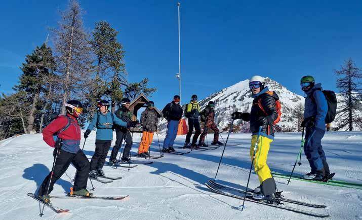 Ski Foundation 2 qualification so Tom decided that we would all ski together in one group and he would provide individual coaching. The majority had not skied since before COVID lockdown, so would need some time getting back into it, but a couple had recently returned from the RAF Cosford Exped to Tux, Austria – so had no excuses! Although a small resort, Montgenèvre offered a wide variety of ski terrain including plenty of blue and red runs, where we were able to get our ‘ski legs’ in and practice our improvement techniques through skills and drills given to us by Tom. Also, there were some ‘cheeky’ black runs which were approached with some trepidation and required a lot of concentration to get down in one piece. Throughout the week we would re-ski these and it was really encouraging to see the progress of the group as they approached with no fear.
