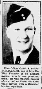 PO Grant Alexander Fletcher RCAF, Bomb Aimer, Age 27 – 5 missions