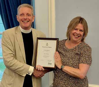 Doctor Giles Legood MBE KHC was a guest at an informal dinner in the Officers’ Mess recently where he surprised Claire Ruston of the Station Chaplaincy Team with the presentation of her Chaplain-inChief Commendation.