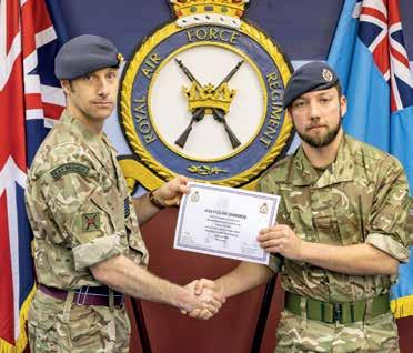 AS1 Folan receives his RAuxAF Regiment Gunner Training Certificate from Wg Cdr Jupp, OC RTS(A)