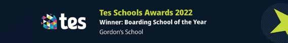 BOARDING IN SURREY GORDON’S SCHOOL www.gordons.school YEARS 7, 9 AND 12 BOARDING PLACES AVAILABLE Students thrive and make excellent progress because of the genuine and nurturing relationships they have with boarding staff. OFSTED BOARDING INSPECTION REPORT 2024 BESPOKE RESIDENTIAL BOARDING HOUSE FOR YEAR 7 STUDENTS NON-SELECTIVE LOWER SCHOOL PRIORITY PLACES FOR FORCES BOARDING FROM UNDER £800 PER TERM WITH CEA For Open Events please visit www.gordons.school