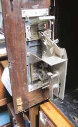 Operation was simple, one pushed a penny or ha’penny into the slot and a stamp of the appropriate value appeared from another slot below. The mechanism is robust and is operated by the weight of the coin operating levers, which turn a toothed spool fed from a roll of stamps, as it