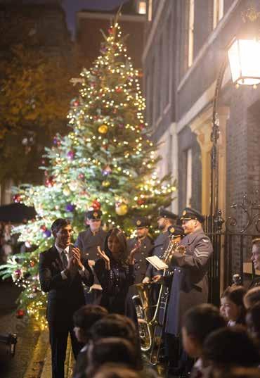 Band of the RAF performed at No.10 Downing Street as the Christas lights were switched on. Positioned next to the Christmas tree outside the most iconic front door in the world, the quintet played for invited guests, the Prime Minister, his wife and the press. They even got to meet Larry the Downing Street cat and chief mouser to the Cabinet Office!
