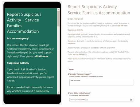 Thanks to the vigilance of the service families community, RAF Police have monitored an increase in suspicious activity around vacant SFA properties. The information we receive from the community is invaluable in shaping our Community Policing priorities, therefore we welcome every report we get. You may have already received our new Suspicious Activity reporting leaflet, which includes a QR code to report things directly to us & a handy reporting aid which you could use also. Remember if you see a crime in progress, call 999.