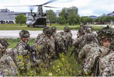 The tactical training kicked off on the 25th of July, when 64 armedto-the-teeth 2 RIFLES infanteers were dropped into Niinisalo Trg Area as a Heliborne Assault Force (HAF). On subsequent days further HAFs were flown as the ground commander’s scheme of manoeuvre demanded helicopter support to lift his fighting strength into position to engage the enemy. As the scenario increased in complexity, NH90 and Chinook crews operated seamlessly together, proving that if ever the need arises, they’ll be able to work together at the highest level from the outset.