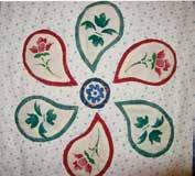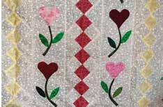 Hand appliquéd “heart flowers” and 4 patch blocks “set on point” combine two of the many easy techniques learnt while with The Academy Quilters.