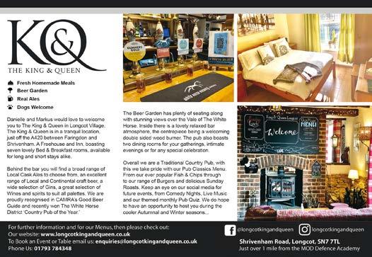 27 WINTER 2022 FERNHAM SN7 7NX 01367 820 643 www.TheWoodmanFernham.co.uk Charming 17th century country pub just 2 miles from Faringdon Delicious seasonal menus Cask conditioned ales, craft beers, wine & cocktails Dog friendly Minibus pick up for tables of 8+ The Woodman Bespoke Guide Advert v1.indd 1 06/05/2021 13:34 FRAMEMAKERS www.framemakersgalleries.co.uk • Bespoke Picture Framing • Ready Made Frames • Gallery - Limited Edition Prints & Original Paintings • Sculptures Tel 01672 516396 FRAMEMAKERS, 96 HIGH STREET, MARLBOROUGH, WILTSHIRE SN8 1HD BRANcHES ALSO AT NEWBURy, SALISBURy AND BASINGSTOKE Military Discount on Bespoke Framing