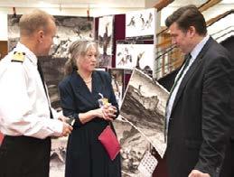 BOTTOM LEFT IMAGE: Artist Kim Whitby discusses her work with Rt Hon James Heappey MP (right) and Captain Matt Syrett (left), ACSC Course Director.