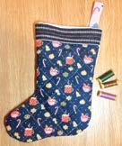 A real lovely 1st stocking with a specially designed machine embroidered cuff. Cross hatch quilting has added delightful texture to the creation.