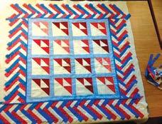 Red, white and blue a great colour combination used for this creation, precious saved scraps, stitched with love and care has resulted in this special quilt. A work in progress, nearing completion, just the quilting, important label and binding to be done.