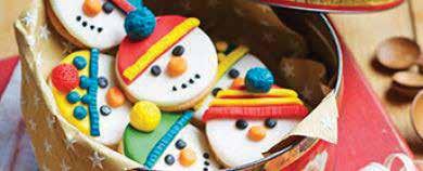 6. Decorate the hats with icing spots and stripes, if you like. Roll out balls of coloured icing, poke holes all over with a cocktail stick and stick on as pom poms. Mould lumpy balls of the orange icing for noses and roll out balls of the black icing for eyes. Press down to flatten, then stick on with white icing. Use the tube of black icing to pipe rows of dots for the smiles. Leave to set. Will keep for up to five days in an airtight container.