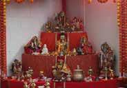 signify bringing light into your life, while milk, rice and sauces are sprinkled over effigies of Buddhist and Hindu gods to offer thanks. The congregation pray for the three powers of physical health, wealth, and knowledge. At the close of the ceremony the shrine, which points west, is offered flowers and grasses as a final act of thanks and gratitude. With purification complete, meditation and prayer can now commence.