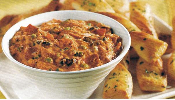 Pepperoni Pizza Dip with Breadstick Dippers Serves 8 1 jar or can (14 ounces) pizza sauce 3⁄4 cup chopped turkey pepperoni 4 green onions, chopped 1 can (2 1⁄4 ounces) sliced black olives, drained