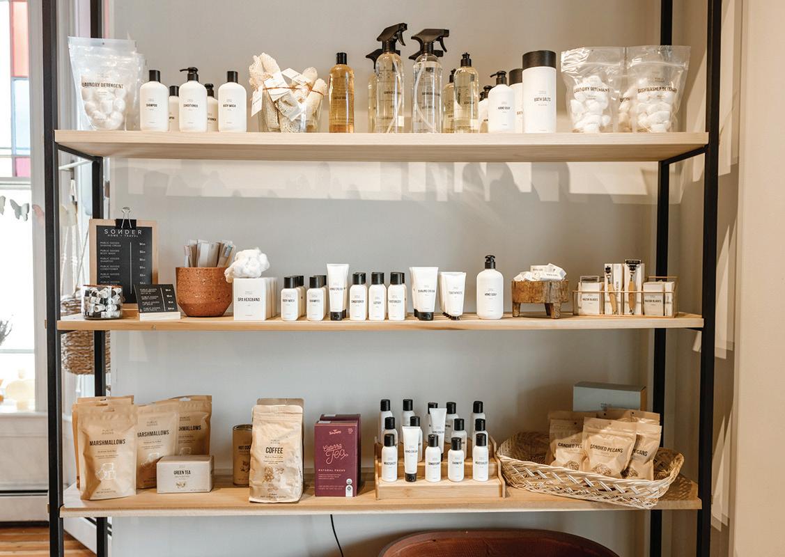 Guests staying here will observe unique décor, local art, and quality products, which complement the already beautiful architecture, stained-glass windows, and deeprooted history of the house built in the late 1800s. Chelsea, who has worked in construction and interior design for the past seven years, is now finding herself managing a retail space, which she calls “a whirlwind experience.”