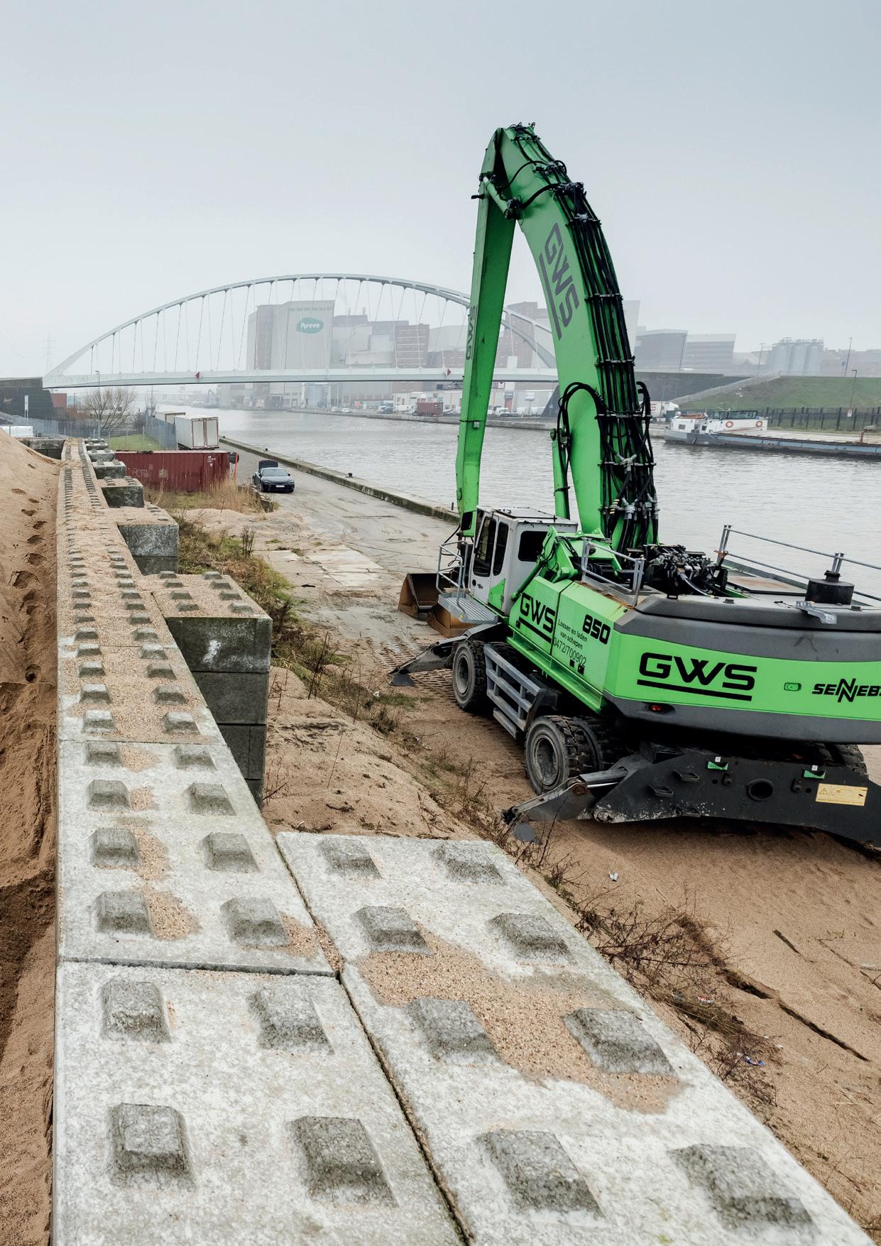 trouwens een eigen betoncentrale en installaties om aangevoerde materialen bijvoorbeeld zelf te kunnen verwerken tot zakgoed. Naast dit duurzamer gebruik van de ruimte moeten overgedimensioneerde waterputten dan weer zorgen voor een slimmer watergebruik. In samenspraak met de omwonenden bekijken we met welke aanplantingen we de omgeving aangenaam kunnen houden, om een goede relatie met de buurt te behouden. De Kanaalkant is het tweede grootste bedrijventerrein in Antwerpen. In samenwerking met de Provinciale Ontwikkelingsmaatschappij (POM) Antwerpen en Slim naar Antwerpen wordt daarom bekeken welke bedrijven in dit gebied eveneens economisch voordeel zouden kunnen doen met het gebruik van onze kade voor aan- of afvoer van grondstoffen of producten. Als kade-uitbater zullen we hen daarin dan ondersteunen.’