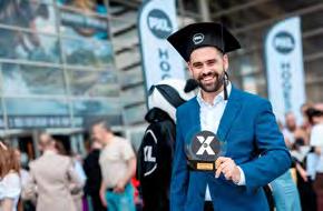 Bert Vanierschot, student sociaal werkpersoneelswerk, met de Xfactor Award 2025. Die gaat jaarlijks naar een student die het verschil maakt. Ondanks een moeilijke start – artsen voorspelden dat hij nooit zou kunnen praten of stappen – bewees Bert telkens het tegendeel. Met doorzettingsvermogen, positieve energie en veerkracht rondde hij zijn opleiding af en inspireerde hij medestudenten, docen
