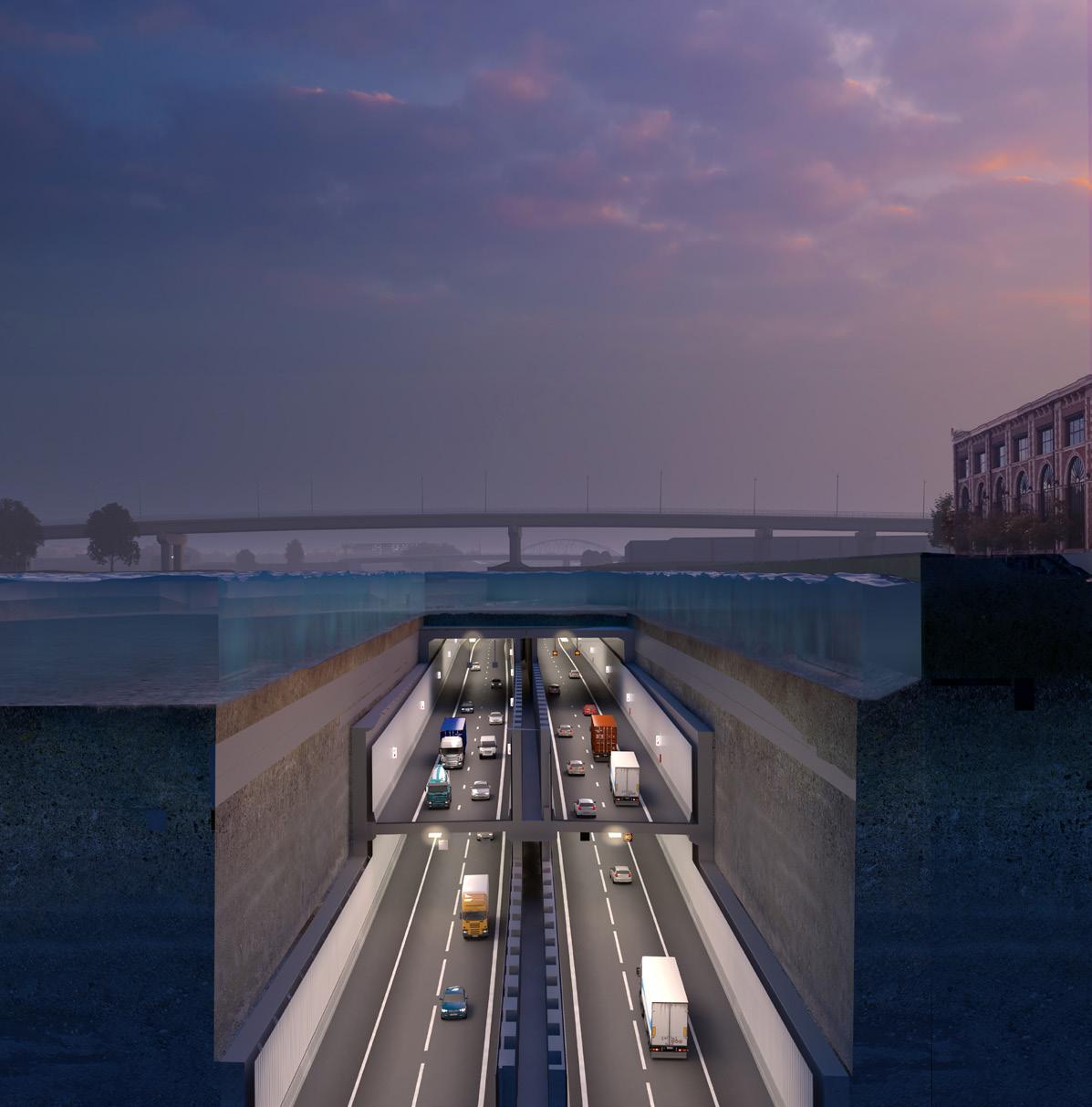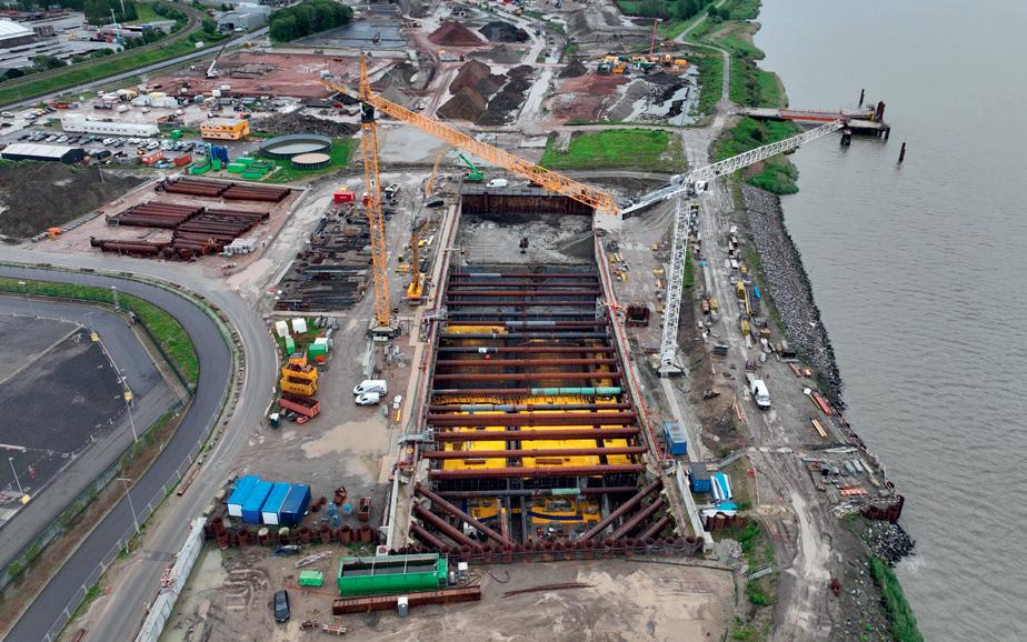 tot een volwaardige tunnel. ‘Dat is de wet van Archimedes toegepast in de praktijk. Burgerlijke bouwkunde op zijn best’, noemt Jan Bauwens het. Hij is de projectdirecteur van COTU, het tijdelijke consortium bestaande uit BESIX, Stadsbader Contractors, DEME en Jan De Nul dat deze titanenklus voor zijn rekening neemt. Als alles goed gaat, is de ruwbouw in 2027 klaar. Daarna kan alles worden afgewerkt worden, om tegen 2030 de eerste auto’s en vrachtwagens door de Scheldetunnel te laten rijden.