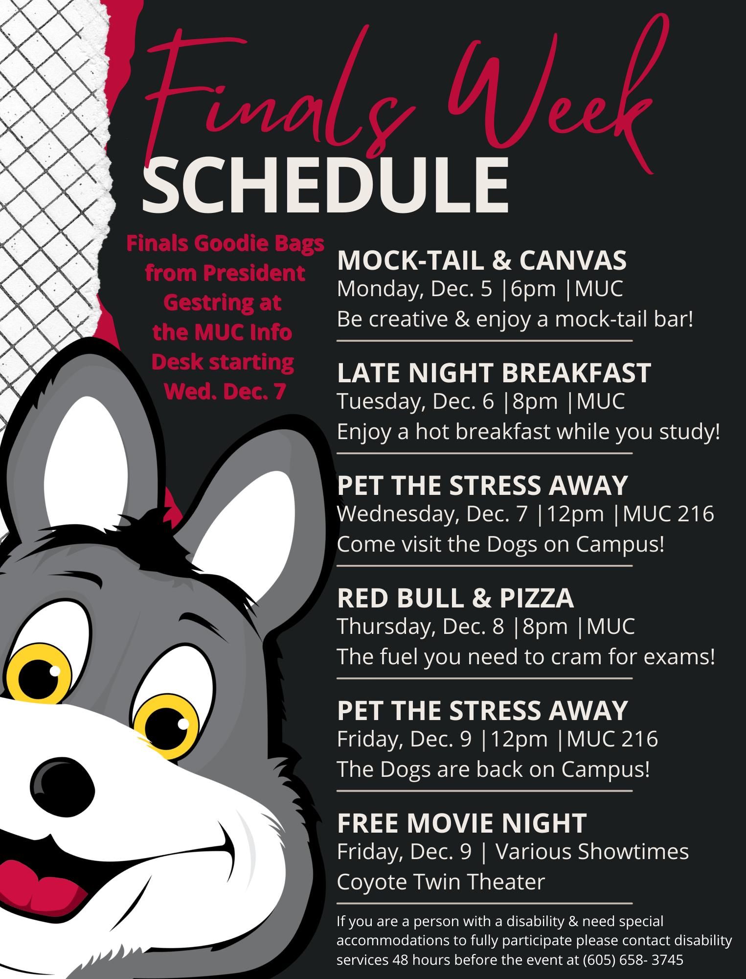 More information about campus resources related to students’ mental health can be found on the USD website. The state of South Dakota also provides constant access to a trained crisis specialist through a call or text to the 988 Suicide and Crisis Lifeline.