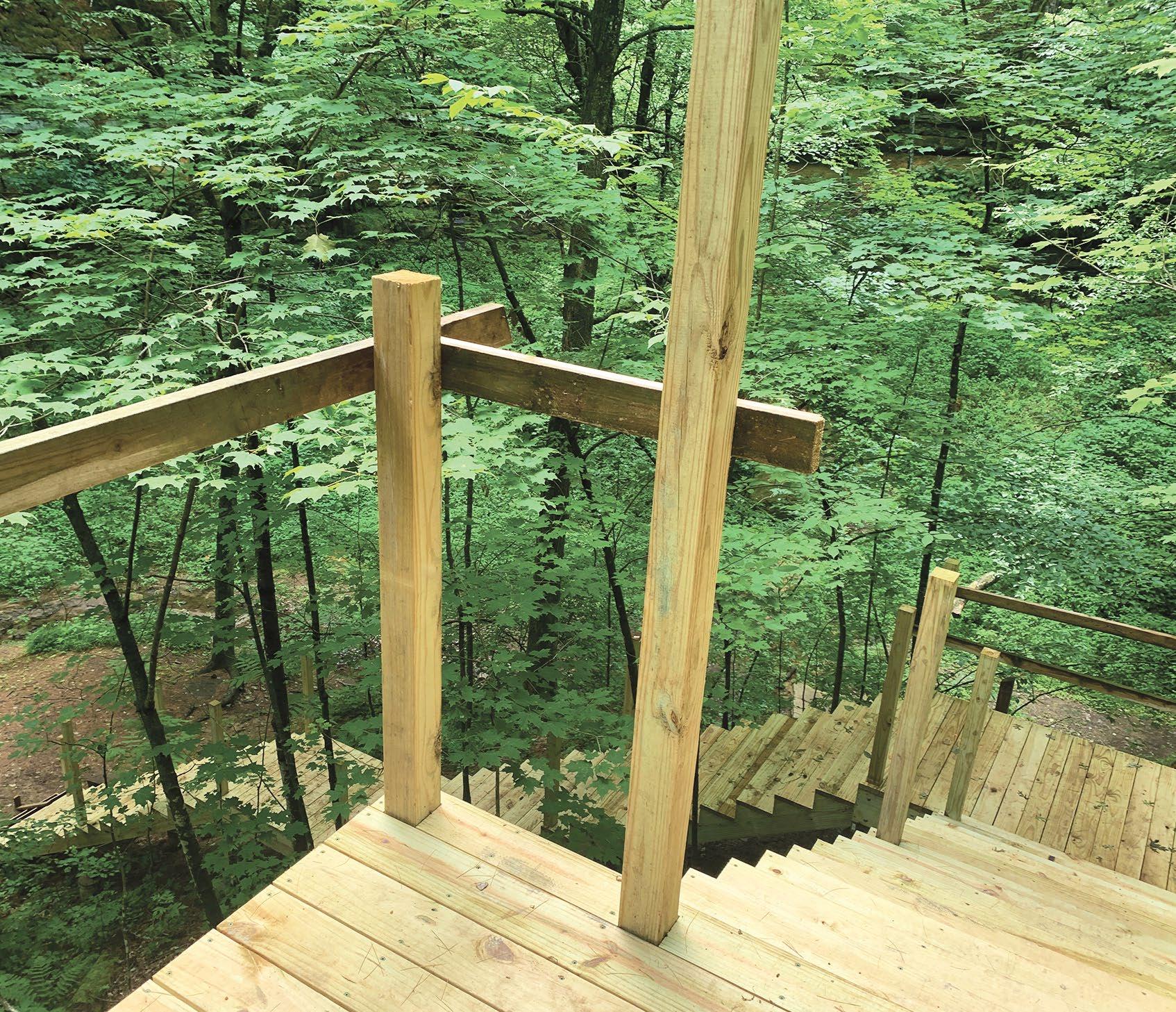 In the beginning of 2021, the Landmark Conservancy – the nonprofit entity that owns the Punchbowl – launched a campaign to raise funds to replace the stairway to Menomonie’s gorgeous and rare landmark. Last renovated in 2015 with the addition of the upper part of the stairway, the wooden stairs