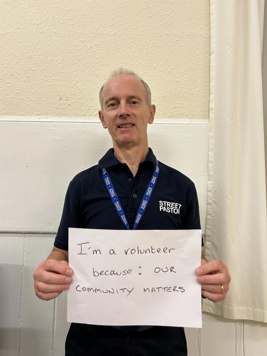 m a volunteer because our mmunity matters.” ke has been volunteering with the r and Prestwick Street Pastors for e year A Street Pastor is someone m the Christian community who is ing to care, listen and help. Ayr and estwick Street Pastors are a team of people from 10 local churches who cently celebrated 10 years of looking t for people in Ayr and Prestwick. ere are volunteer opportunities ailable that reflect your values and gious/spiritual beliefs Volunteer otland have recently launched a mpaign called No Volunteers, No mmunity highlighting the vital role at volunteers play in our local mmunities.