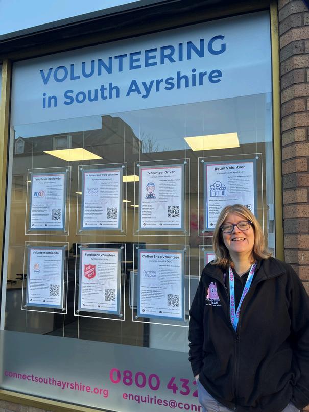 eer because I like to like to be helpful. I new skills - I love Danielle and her s such good fun.” nteered in Ayr Food t opened in January o volunteers in the ire Hospice. One of sons for volunteering her out of the house utine. enefits of is that it can give you urpose which in turn eaningful impact on s. David